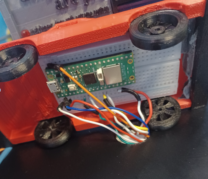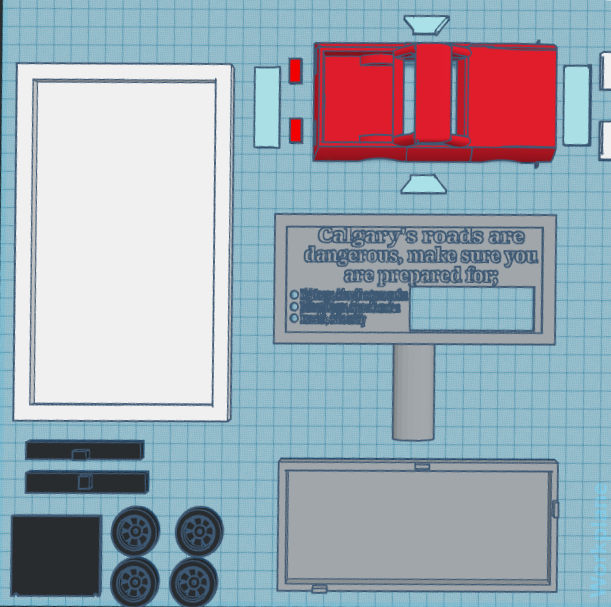 The final design chosen was a design featuring a car and a billboard that displays driving conditions based on real-time weather data. The code enables the PicoBoard to pull region-specific data from the Open Meteo API for Calgary. The LCD display updates according to the API data, indicating good road conditions during favorable weather, intermediate conditions during moderate weather, and poor road conditions during unfavorable weather. Additionally, color-coded LEDs respond to the active weather conditions, providing a clear visual indicator of driving safety. The target audience is Calgary drivers, though the code and design can be easily modified to suit any location or audience.